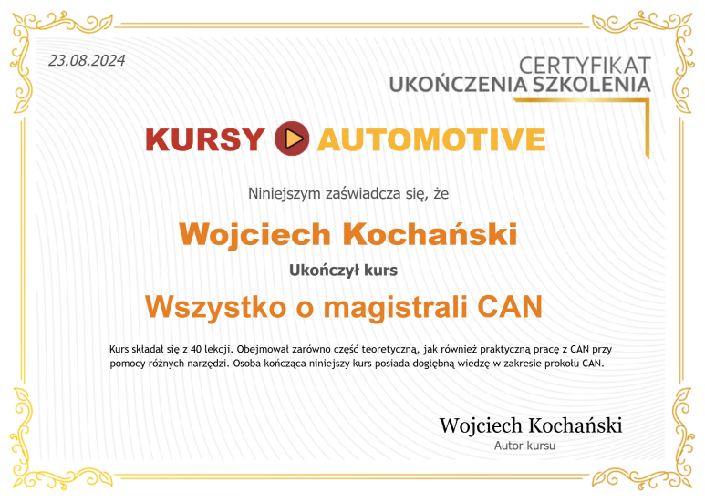 Wszystkie poniższe opinie zostały napisane przez użytkowników, którzy zakupili kurs „Wszystko o magistrali CAN”, udostępnione oraz podpisane za ich zgodą.